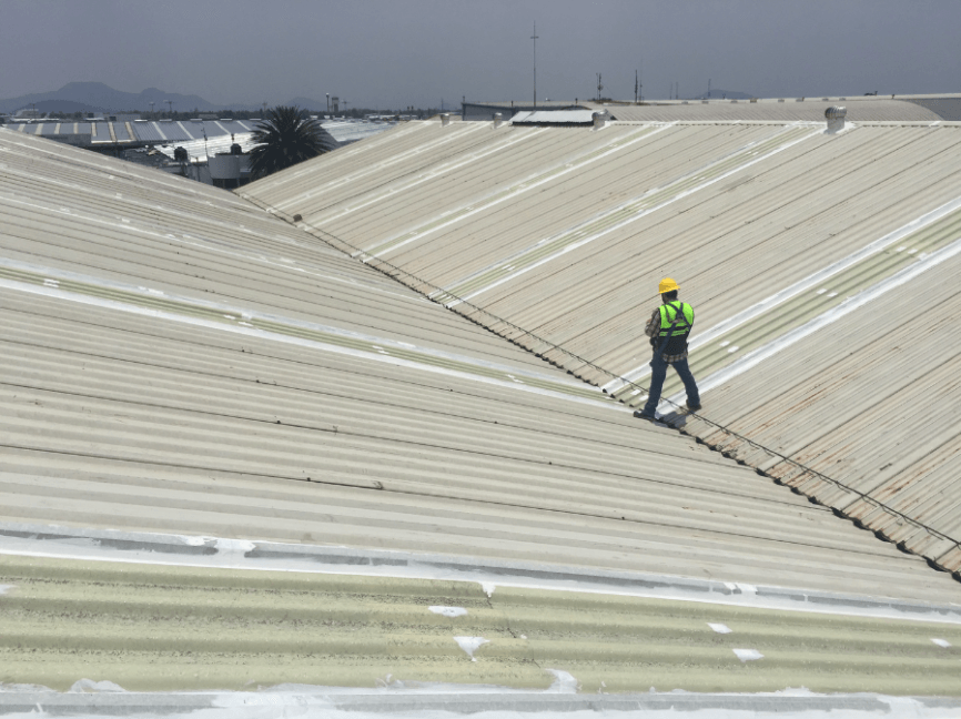 Impermeabilizado y mantenimiento de cubierta de lamina de almacén.