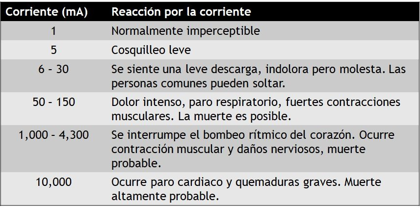 La intensidad en miliamperios (mA) determina el grado de afectación en el cuerpo humano,