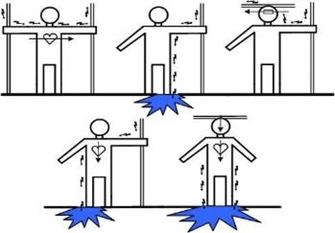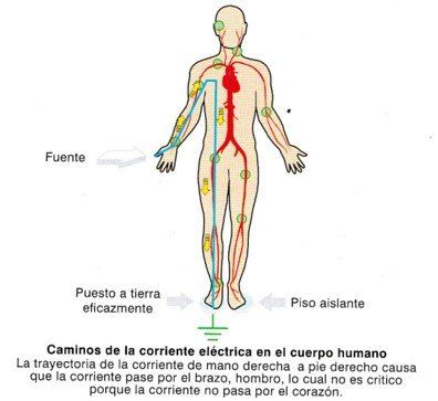 La trayectoria de la corriente de mano derecha a pie derecho provoca paso de la corriente por el hombro, lo cual no es critico porque la corriente no pasa por el corazón.